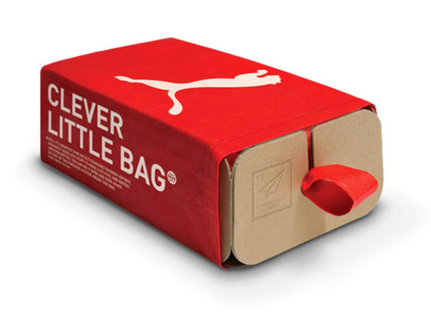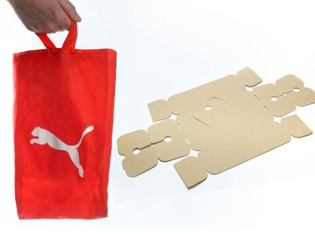 Puma y la «Clever Little Bag»: En su búsqueda de sostenibilidad, sustituyeron la tradicional caja de zapatos de cartón por una bolsa reutilizable y un armazón de cartón mínimo, reduciendo drásticamente el uso de papel y energía.