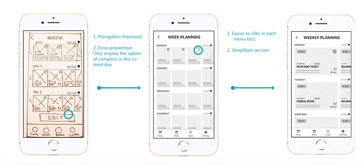 Tras probar el prototipo inicial con tres personas, pasé a una versión de media fidelidad. Necesité tres iteraciones para llegar al resultado final.