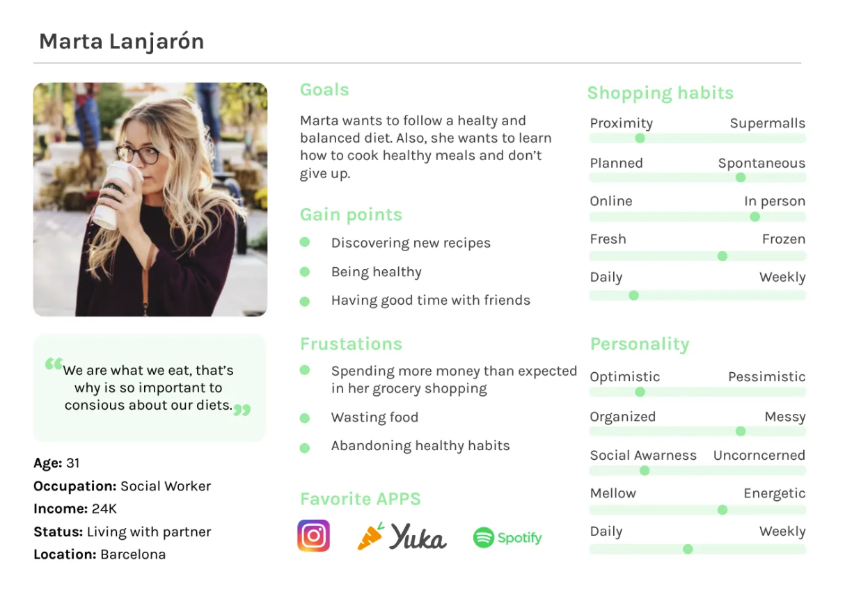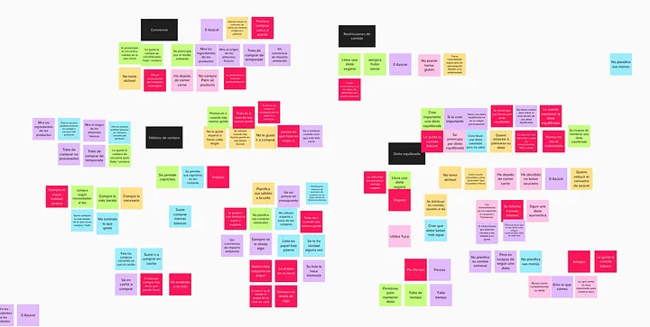 Organizando toda la información en un mapa de afinidad, definí el enfoque final: hábitos de alimentación equilibrada y consumo responsable.