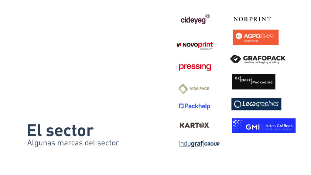 Después de hacer un benchmarking del sector del packaging, pude hacerme una idea del sector. Aquí solo se recoge algunas marcas del sector, de las pocas que tienen una imagen corporativa más cuidada. En general en sector de las artes gráficas, paradójicamente, cuesta encontrar empresas preocupadas de tener una buena marca.